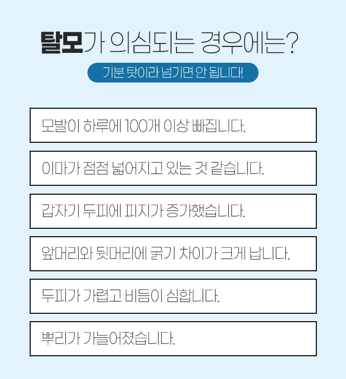 또 다음과 같은 증상이 나타난다면 의정부 자일동 탈모를 의심해야 하는데요.